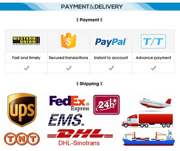Condiciones de pago:T/T, Unión Occidental, L/C, garantía comercial etc.