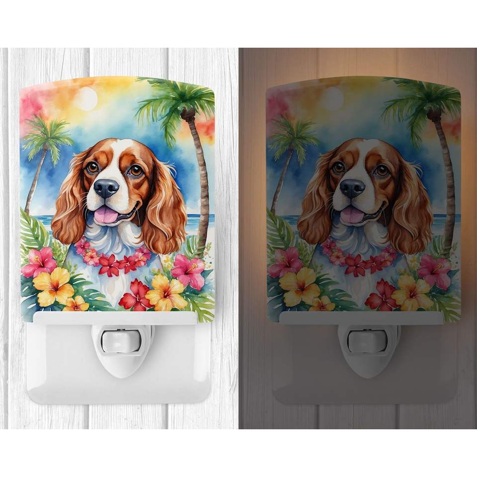 Luz nocturna de cerámica Cavalier Spaniel Luau con certificación UL compacta 6x4x3 Multicolor para dormitorio, baño, guardería, pasillo, cocina