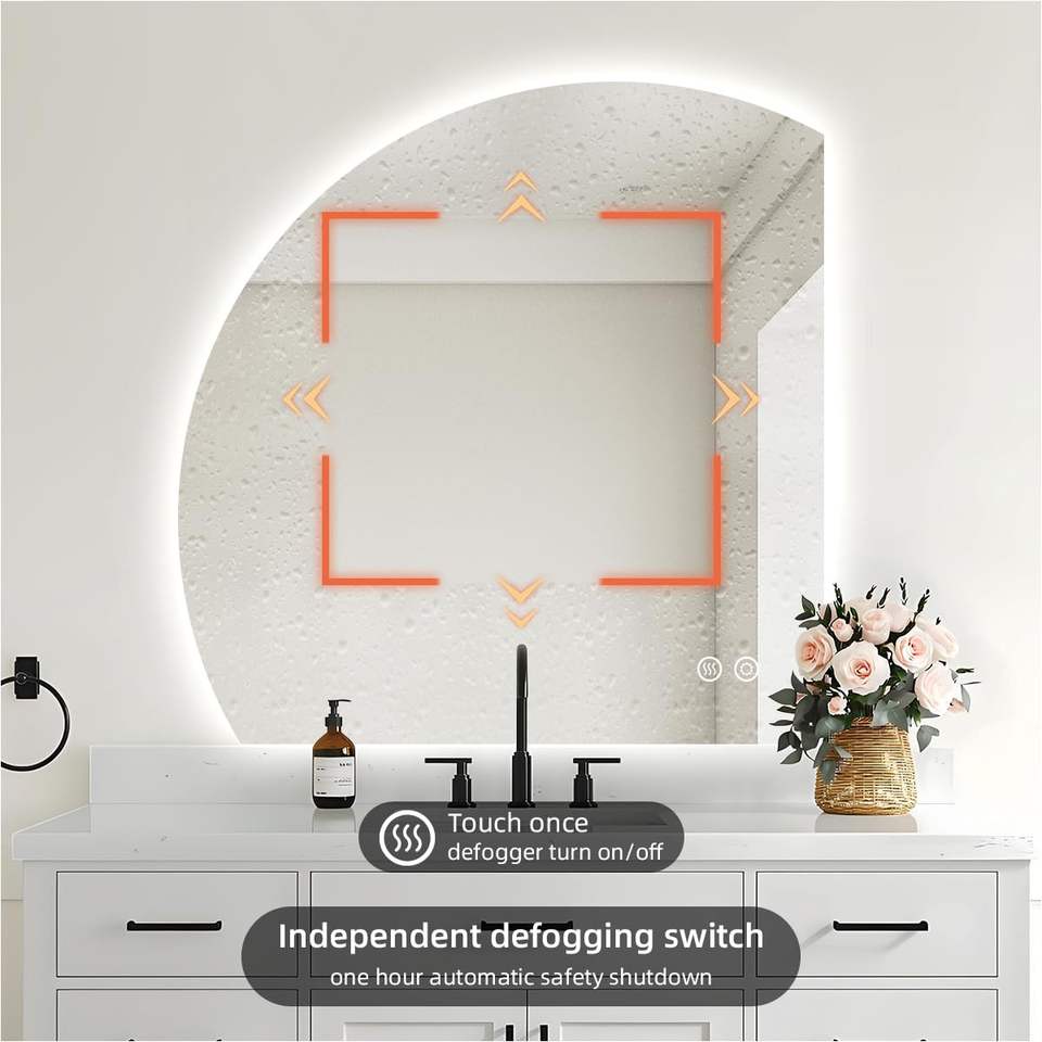 Pared de baño rectangular LED con certificación UL tocador sin marco retroiluminado 1/4 luz moderna antivaho regulable iluminado Irregular