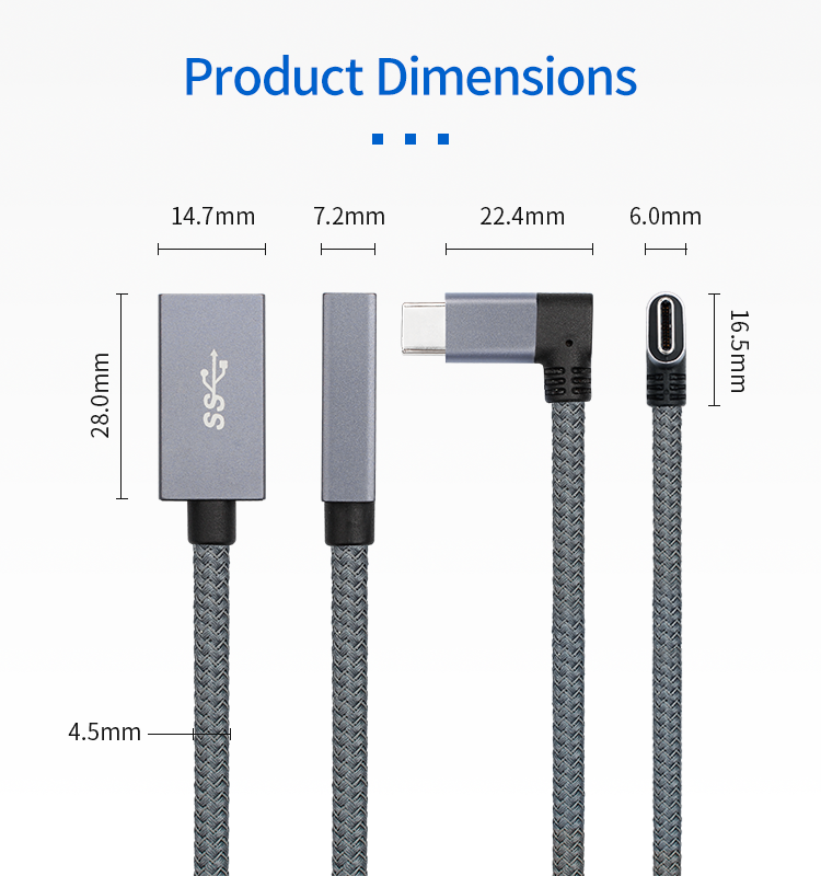 Nombre del producto:90 grados USB tipo C macho a USB 3,0 hembra OTG cable