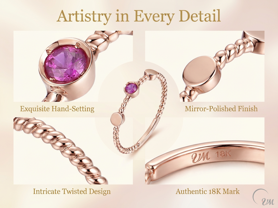 18K Rose Gold Natural Ruby RingTipo de anillos