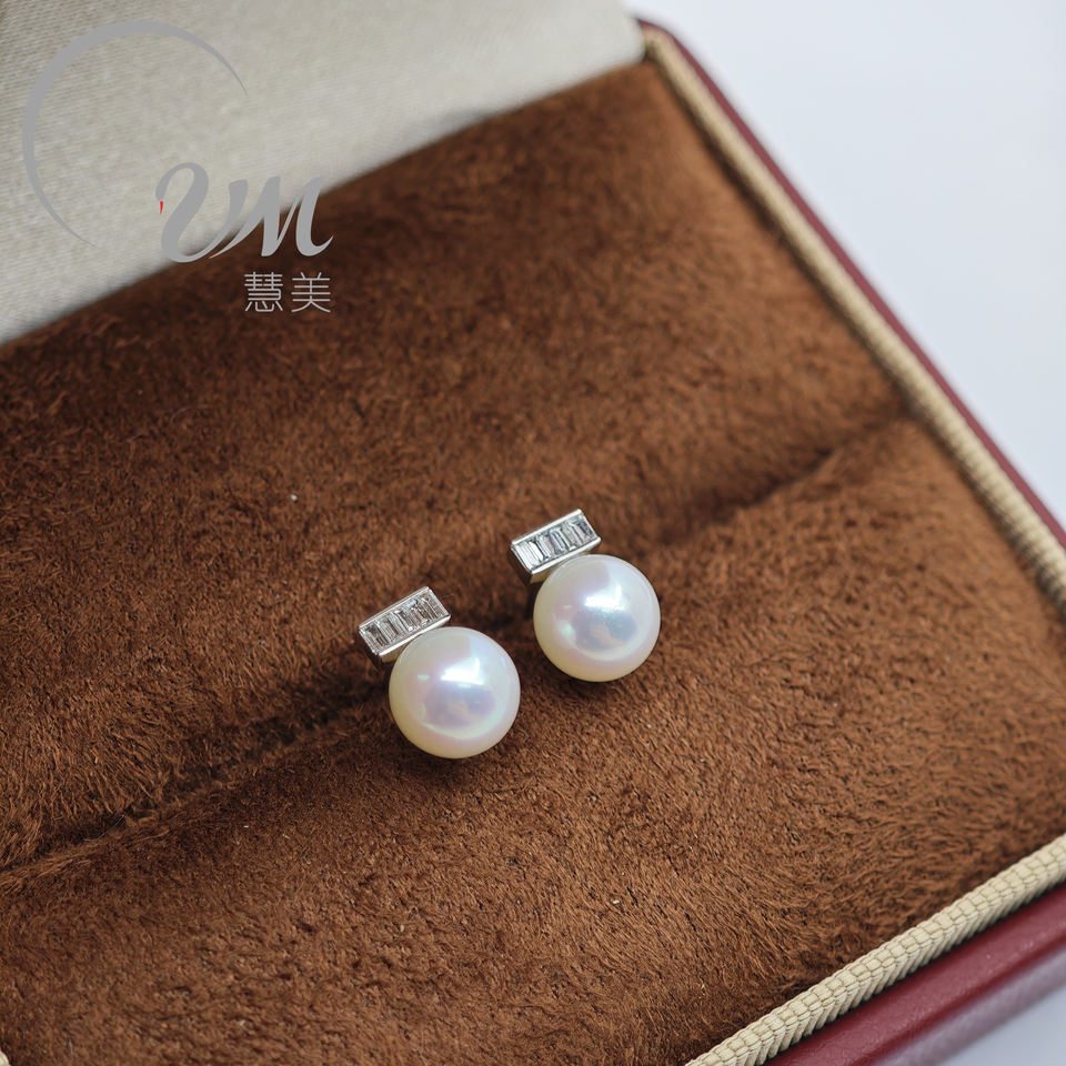 UM Jewelry Pendientes de tuerca de oro macizo de 18 quilates Venta al por mayor Perla de agua dulce Diamante Unisex/Hombres/Mujeres Aniversario Regalo DE BODA diario Desgaste