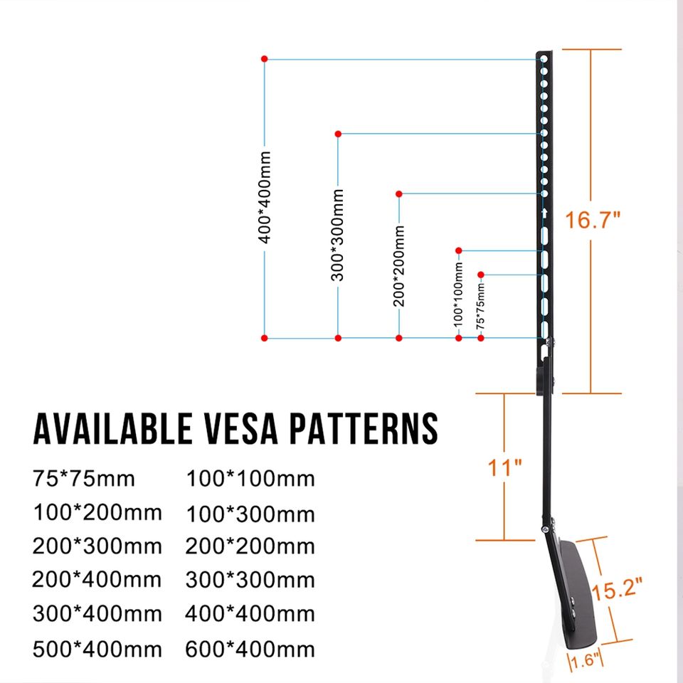 Gama del tamaño de Vesa:100x100 200x300 300x300 300x400 400x400 400x500 400x600