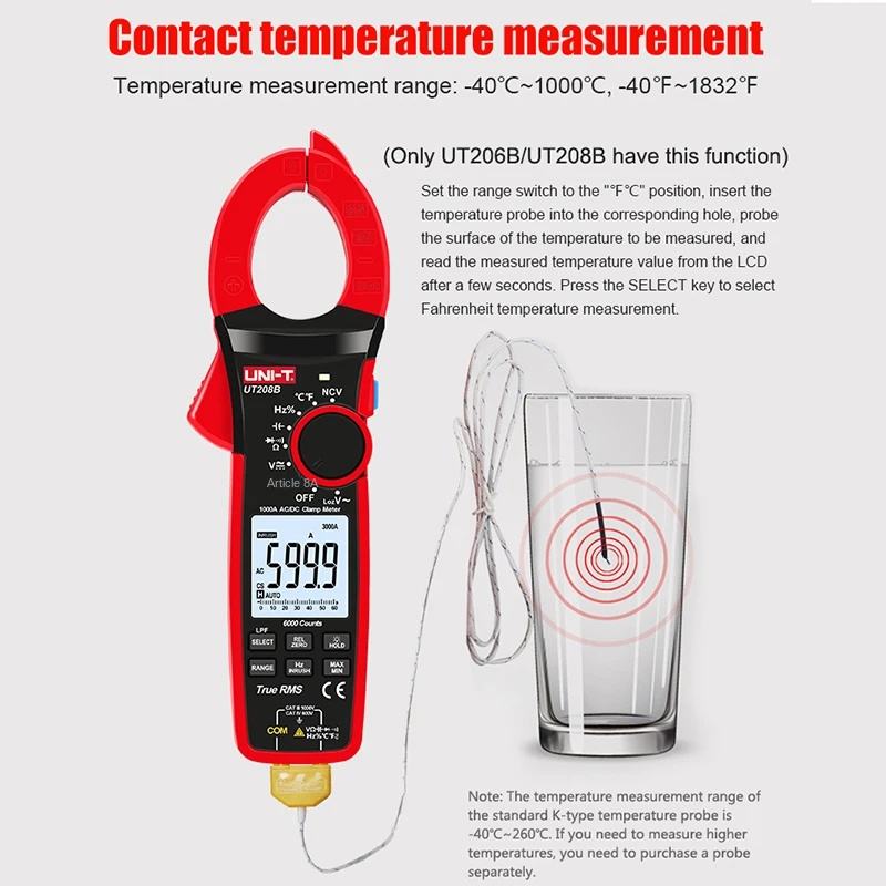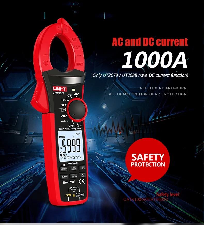 Pinza Amperimétrica Digital UNI-T 1000A True RMS, Apertura de 42 mm, Voltímetro de 1000 V, Amperímetro UT206B/UT207B/UT208B III