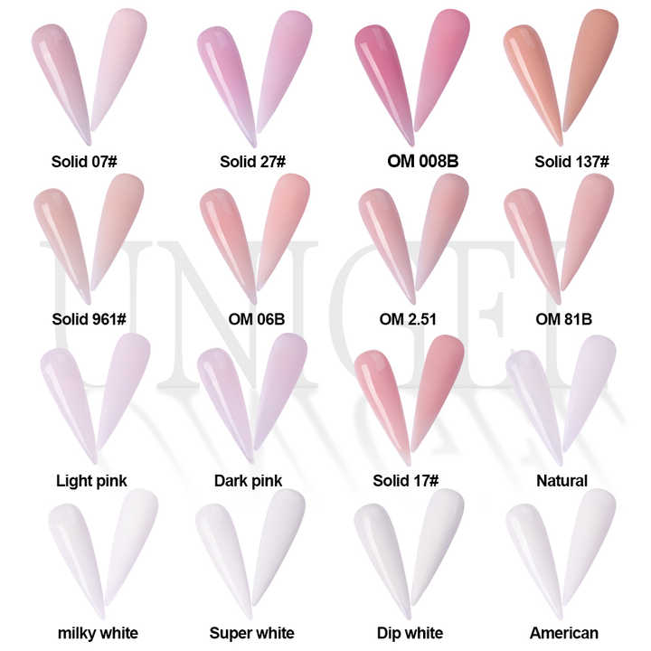 Polvo acrílico UNIGEL personalizado popular 2 en 1 colores a juego para sumergir polvo DAP polvo a granel desnudo rosa claro polvo acrílico blanco lechoso