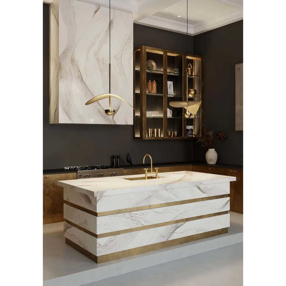 Losa de Cuarzo UNION Windsor Brass Satin Ridge de 15-30 mm de Espesor, Diseño Moderno para Encimeras de Cocina, Paredes de Ducha, Interiores de Lujo