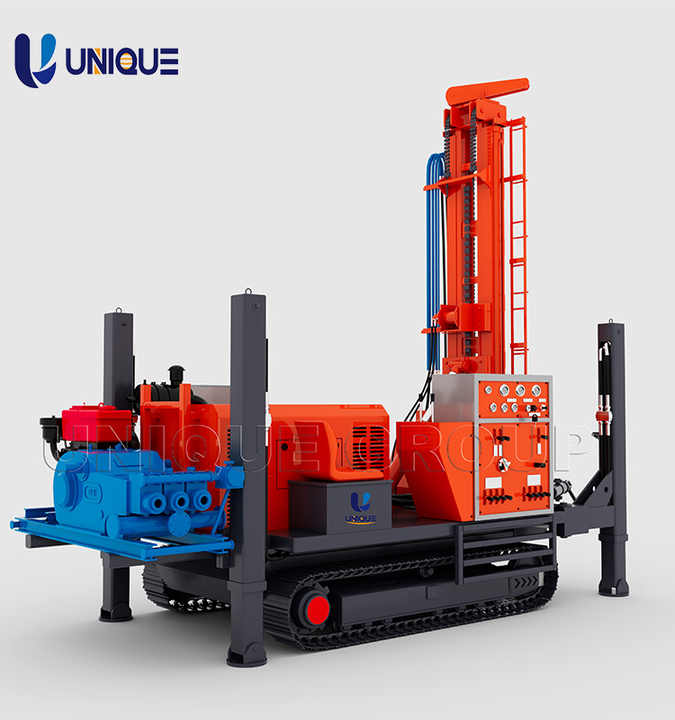 Plataforma de perforación civil y proyectos geotérmicos ÚNICA, máquina perforadora neumática sobre orugas de 300m con caja de cambios de engranajes y componentes de núcleo de rodamiento