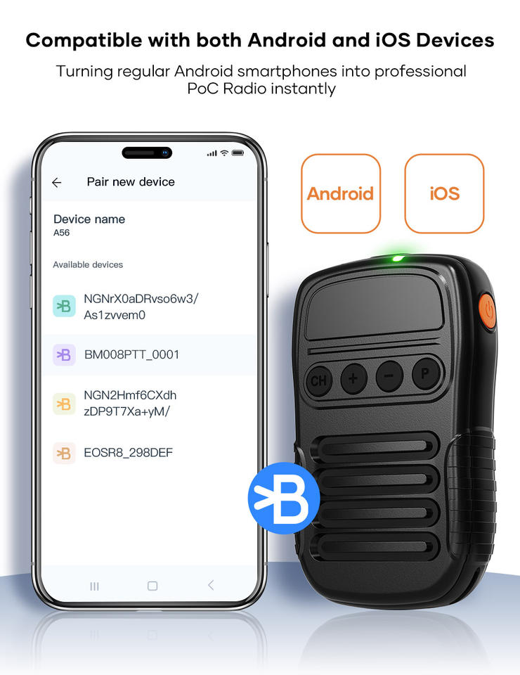UNIWA BM008 Walkie Talkie Inalámbrico Portátil Compatible con Android, Batería Grande, Bluetooth, Micrófono de Condensador, Botón PTT, 3W, Plástico, RGB