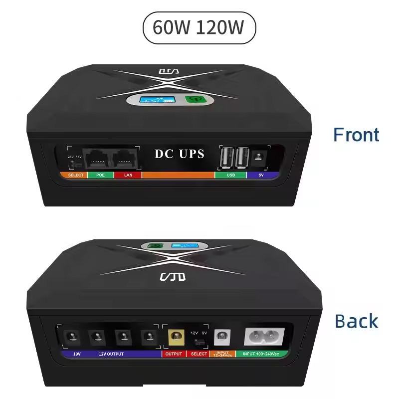 Mini UPS DC de 45W-120W con Batería de Litio, Monofásico, 60Hz, Pantalla LED, Protección IP20 para Electrodomésticos y WiFi