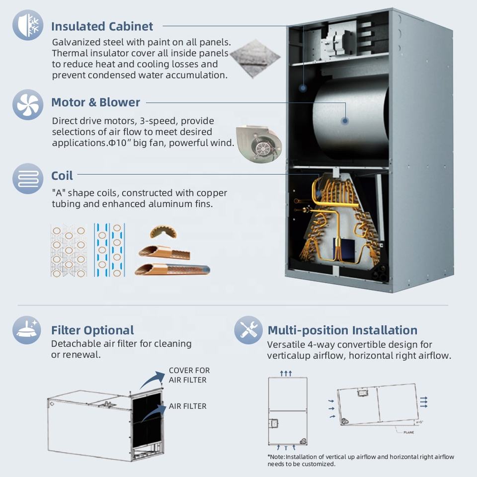 Unidad de CA de 5 toneladas de EE. UU., nueva unidad de tratamiento de aire AHU refrigerada por aire, 15SEER, sin inversor R410a, aire acondicionado central, refrigeración solo para la escuela