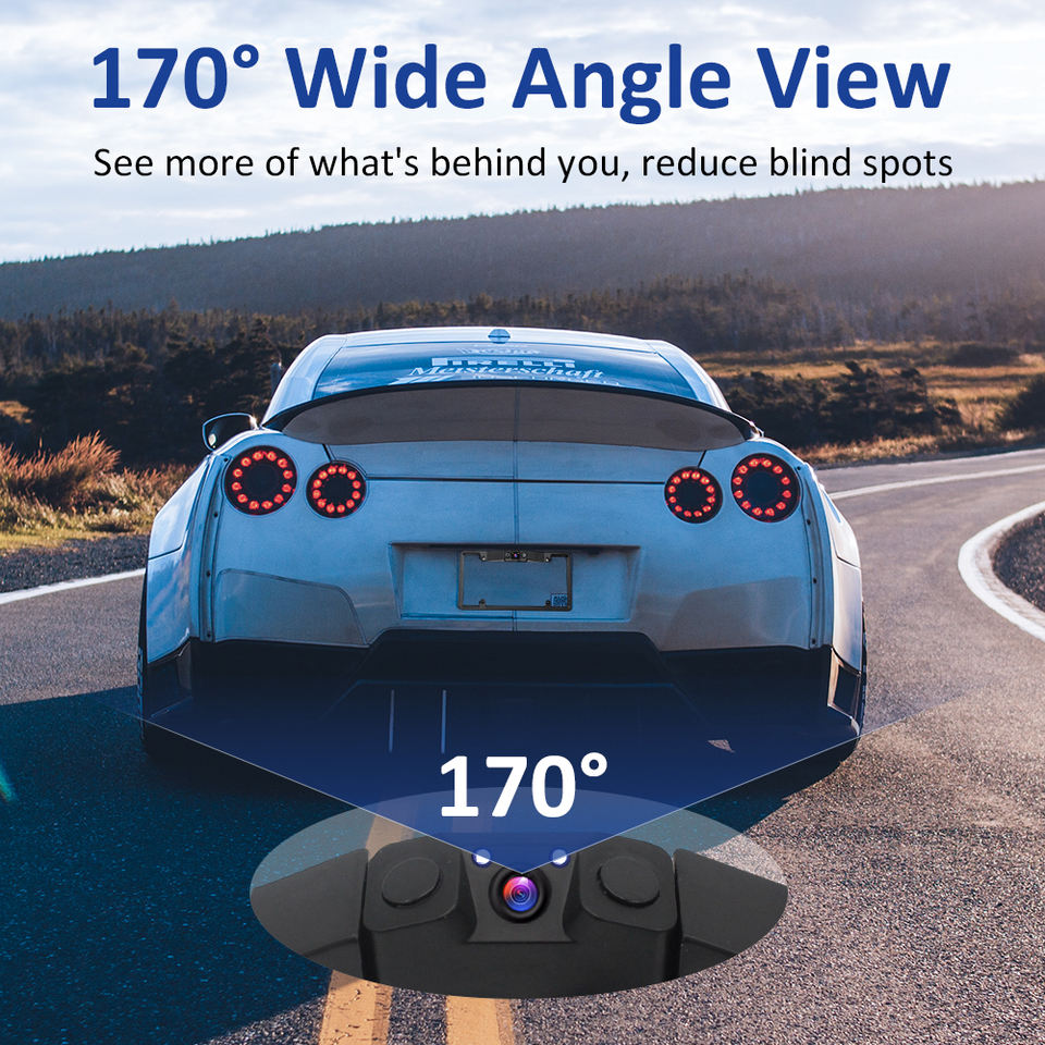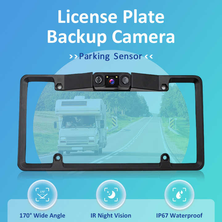 Cámara de Marcha Atrás para Matrícula de Coche con 2 Sensores de Radar, Alarma Audible, Sistema de Estacionamiento Visual, Sin Perforaciones