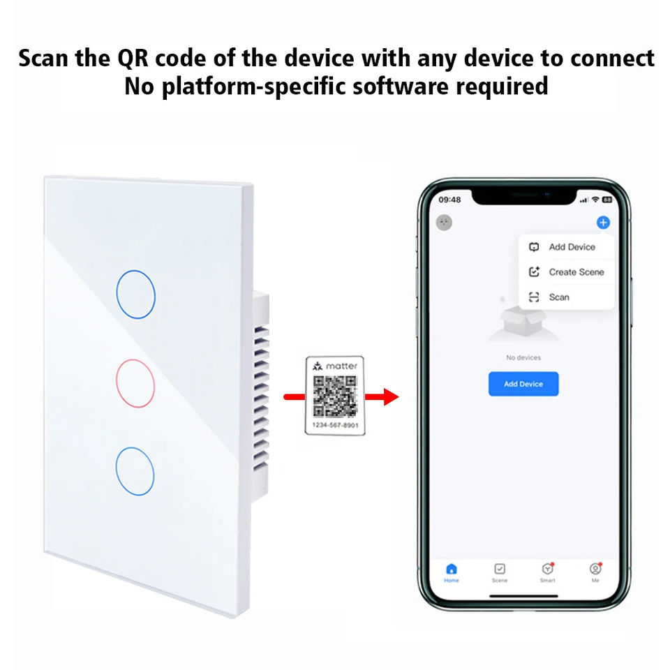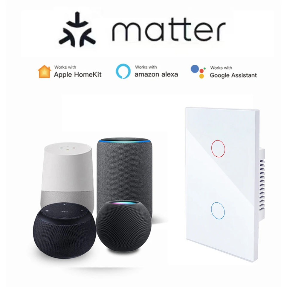 US EU Matter Smart Switch Apple HomeKit Interruptores de pared de luz táctil No Neutral Compatible con Alexa y Google Home