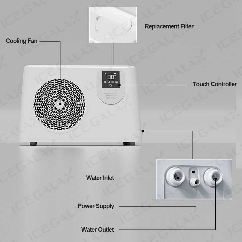 Hogar, Hotel, Al aire libre, Limpieza, Gimnasio, Baño, Ocio, Recuperación fitness, Spa de masaje, Cuidado de la salud, Interior al aire libre, Sistema de Refrigeración, Terapia de baño de hielo, Bañeras de inmersión fría, Deporte recuperación, Gimnasio DeportivoAplicación