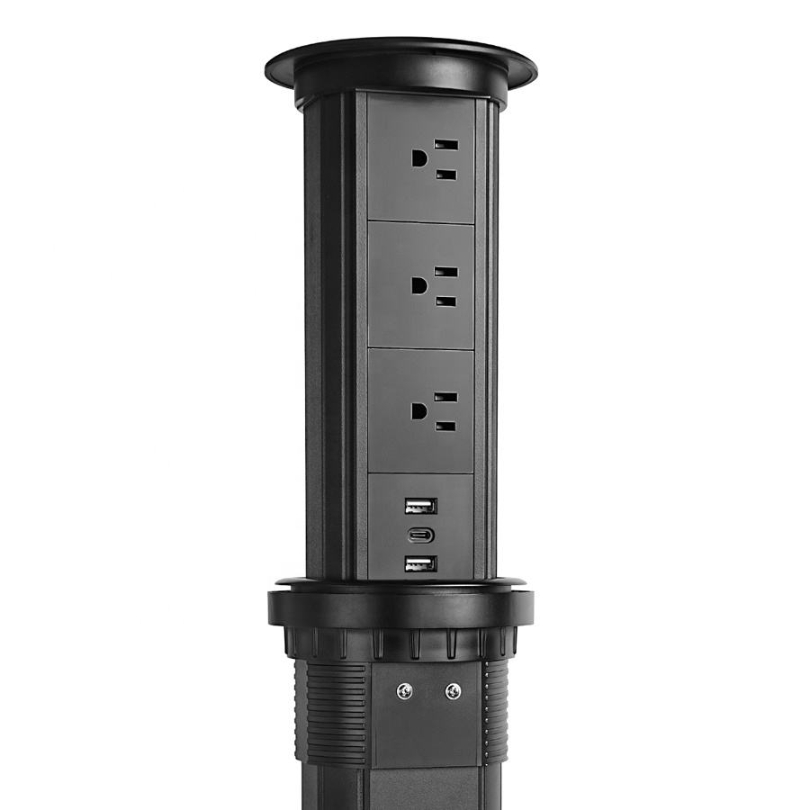 Toma de corriente de encimera emergente motorizada de EE. UU. Para isla de cocina, toma de mesa de elevación eléctrica oculta integrada con puertos USB