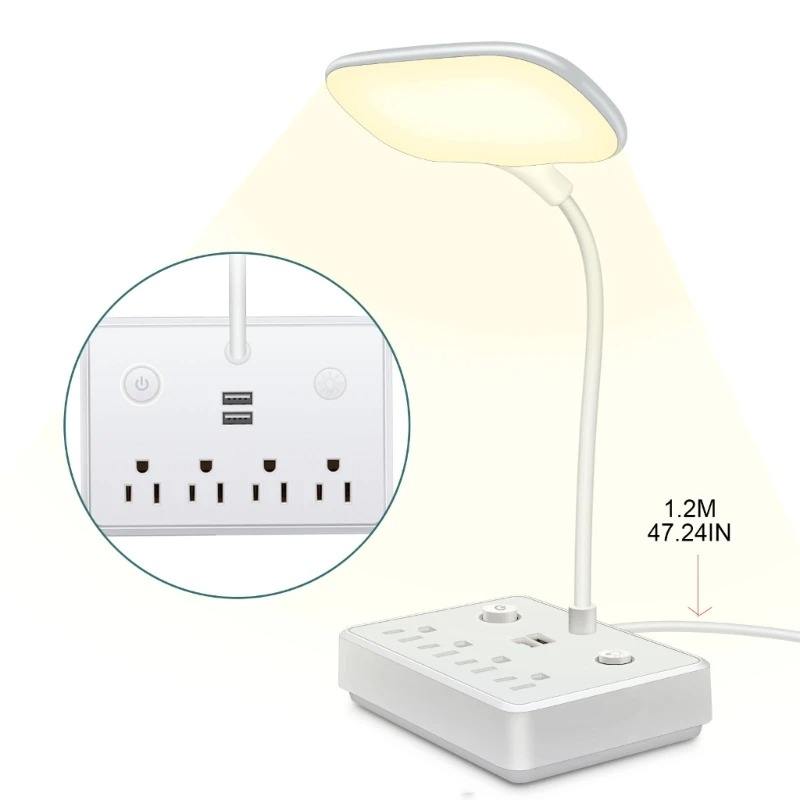 Regleta de Enchufes con Enchufe Estadounidense, 4 Tomas de Corriente, 2 Puertos de Carga USB, Cable de Extensión de 1.2 Metros y Enchufes para Lámpara de Mesa