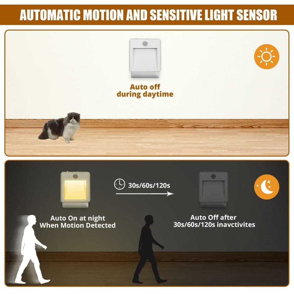 Luz Nocturna LED con Sensor de 2 Colores, Enchufe Estadounidense, Alimentación Eléctrica, para Armario, Pasillo, Clóset, Gabinete