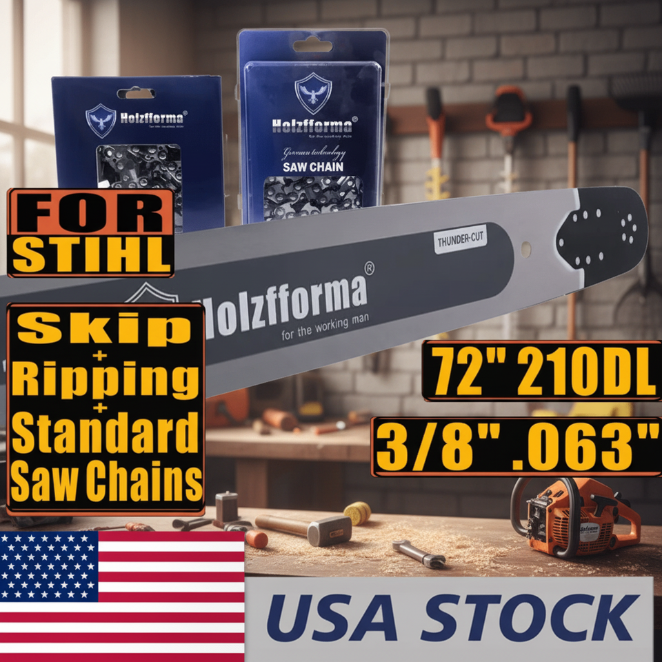 Cadena de sierra de cincel completo de 72 pulgadas, 3/8 pulgadas, .063 pulgadas, 210 eslabones de transmisión, barra guía sólida, combo para ST MS660 MS661 MS650 (Stock de EE. UU.)