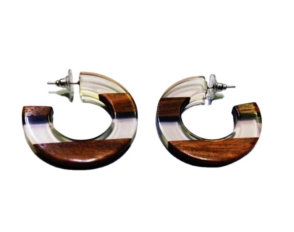 Diseño de tendencia de EE. UU., madera y resina, pendientes conjuntos para niñas, modelos de joyería India para mujer, regalo, fiesta blanca a la moda