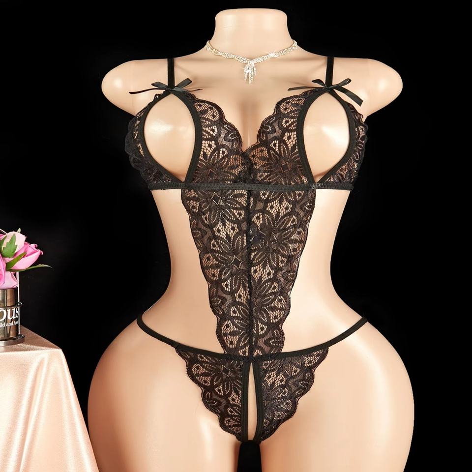Función:Ropa interior sexy con pecho abierto, bodi de encaje semitentador