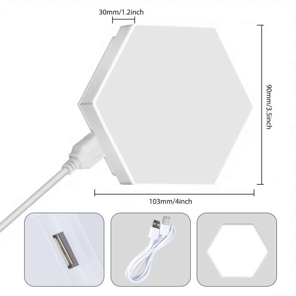 Lámpara de Pared Inteligente LED Blanca en Existencia en EE. UU., Desmontable, Hexagonal, con Diseño Geométrico Hexagonal Modular Táctil Quantum