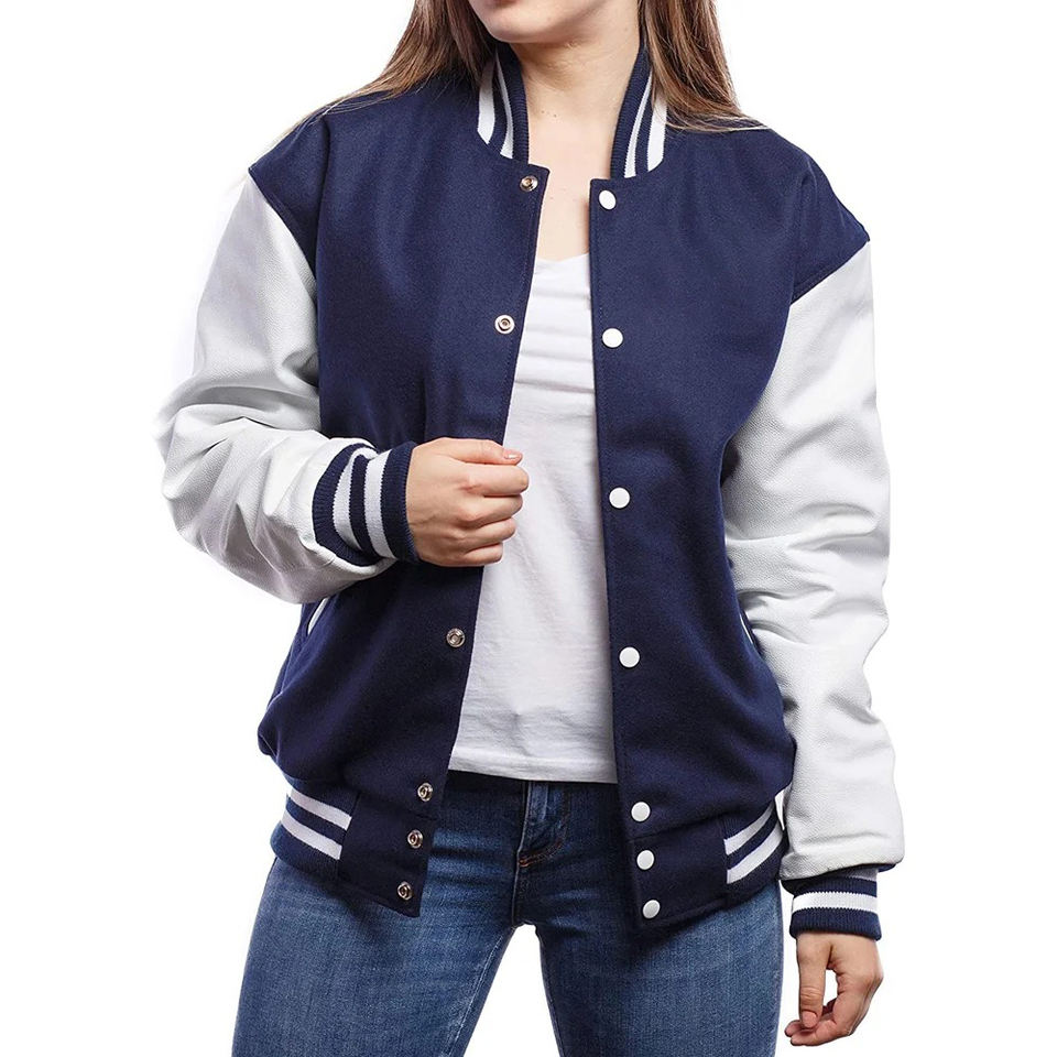 Chaquetas Varsity estilo estadounidense con logotipos personalizados para hermandades, fraternidades, escuelas y universidades, cuerpo 100% lana pura y mangas de cuero.