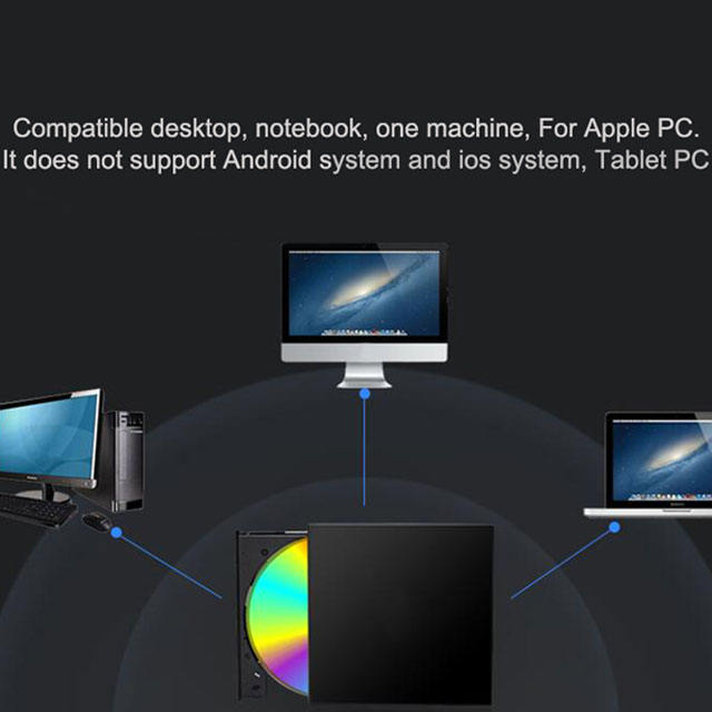 USB 2,0 externo portátil Slim Optical Drive caja de CD / DVD-RW DVD ROM Combo quemador