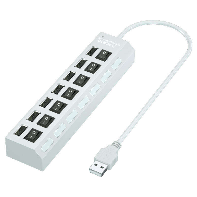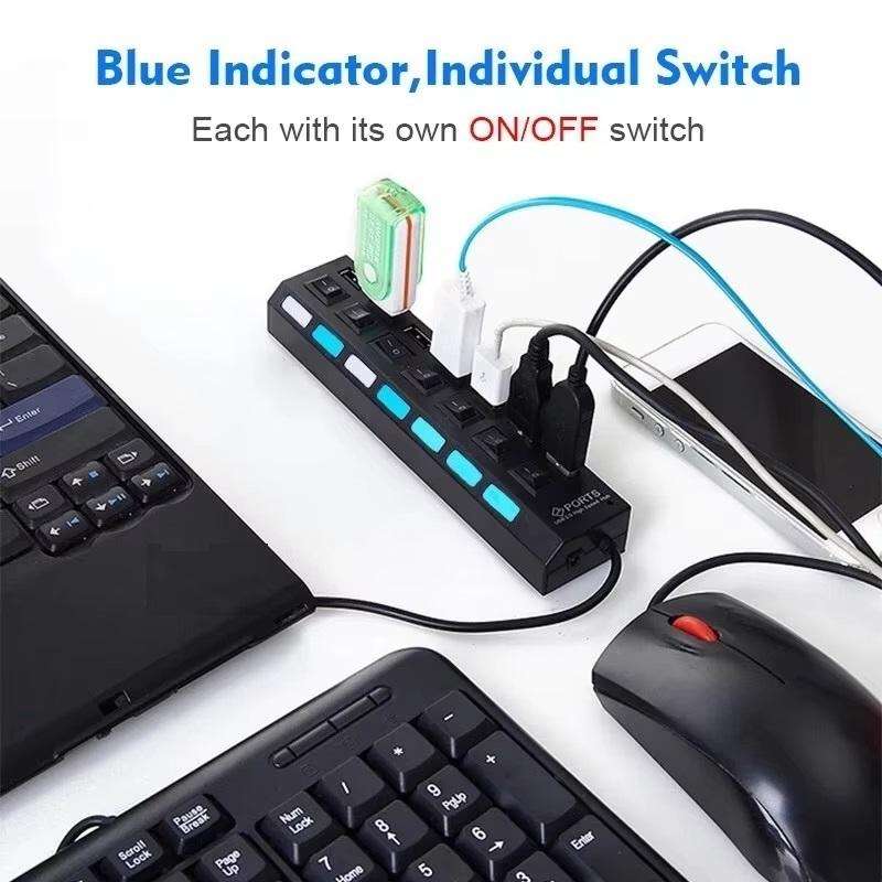 Hub USB 2.0 de 7 Puertos, Divisor de Datos USB 7 en 1 con Interruptor Independiente de Encendido/Apagado y Luces LED para Computadora Portátil, PC y Móvil