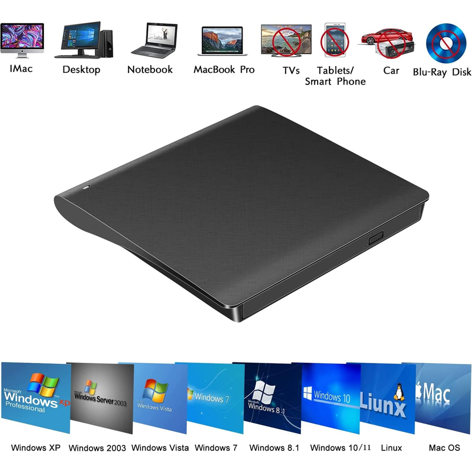 USB 3,0 Unidad óptica externa delgada DVD RW Lector y reproductor de CD para computadoras portátiles de escritorio