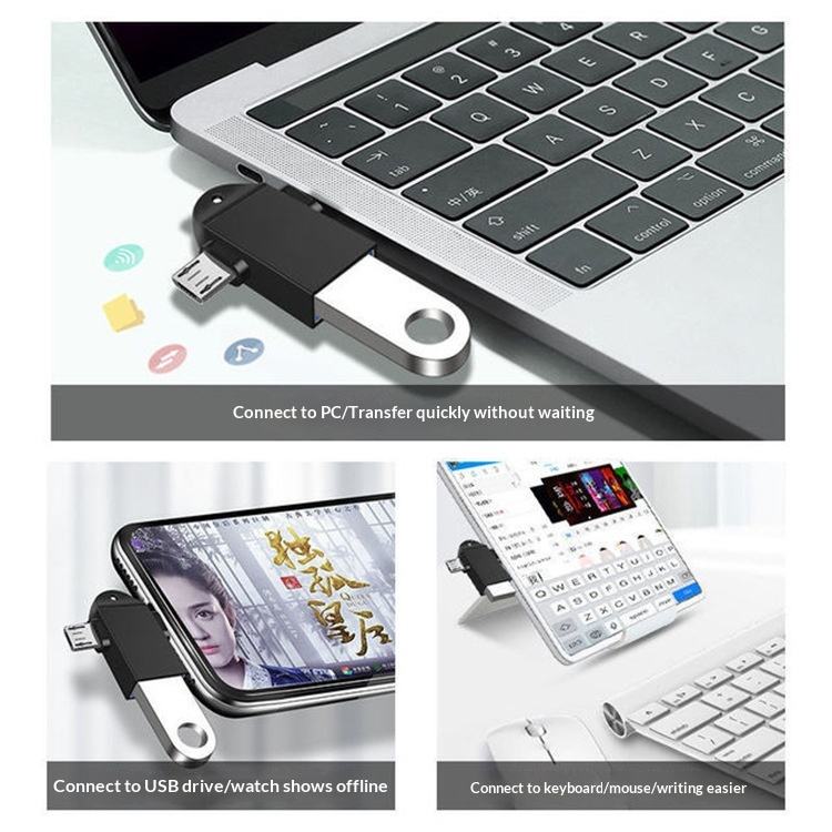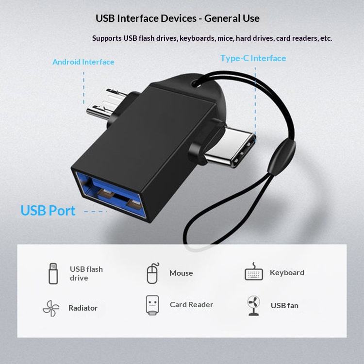 Adaptador USB 3.0 a Micro USB Tipo C 2 en 1, Convertidor OTG con Cordón Negro