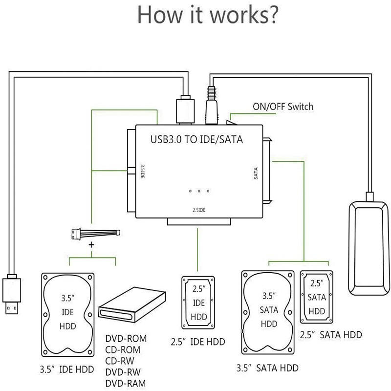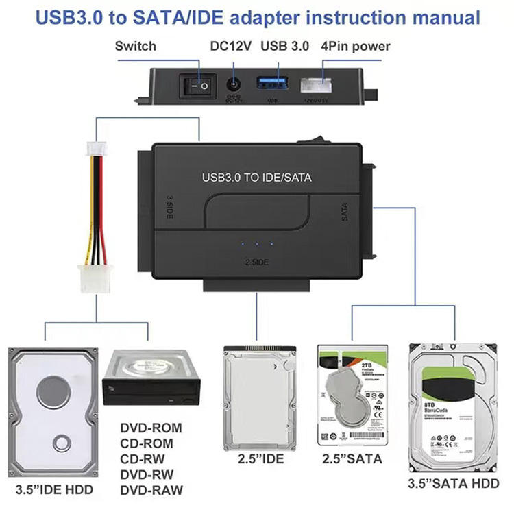Cable adaptador de disco duro USB 3,0 a SATA IDE para 3,5 2,5 pulgadas HDD/SSD CD DVD ROM 3 en 1USB IDE SATA