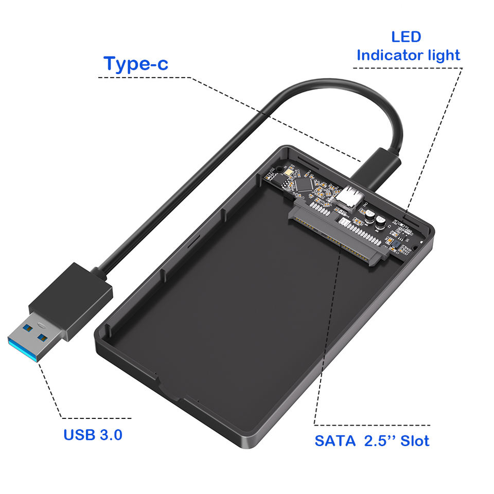 Carcasa USB 3.1 Tipo-C a SATA de 2.5 Pulgadas para Disco Duro HDD/SSD, Carcasa Externa Portátil de Plástico para Discos Duros