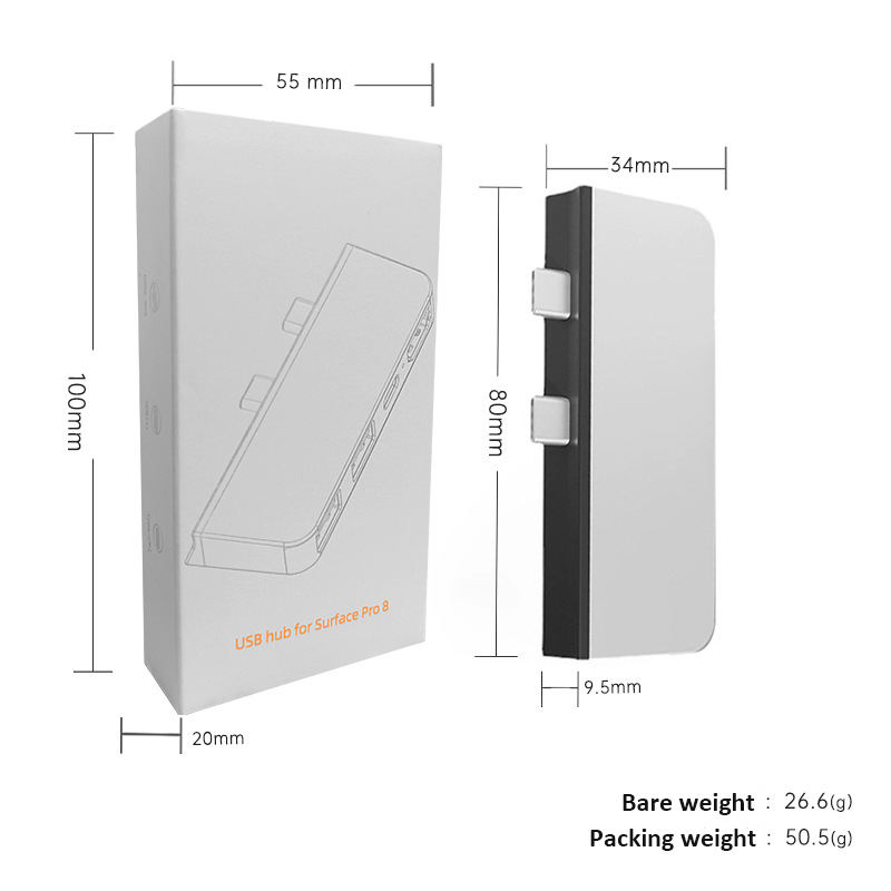 Hub multifunción USB de 4 puertos 3,0, carcasa de aleación de aluminio, estación de acoplamiento plateada, Hub tipo C para Microsoft Surface Pro 8/9 Stock