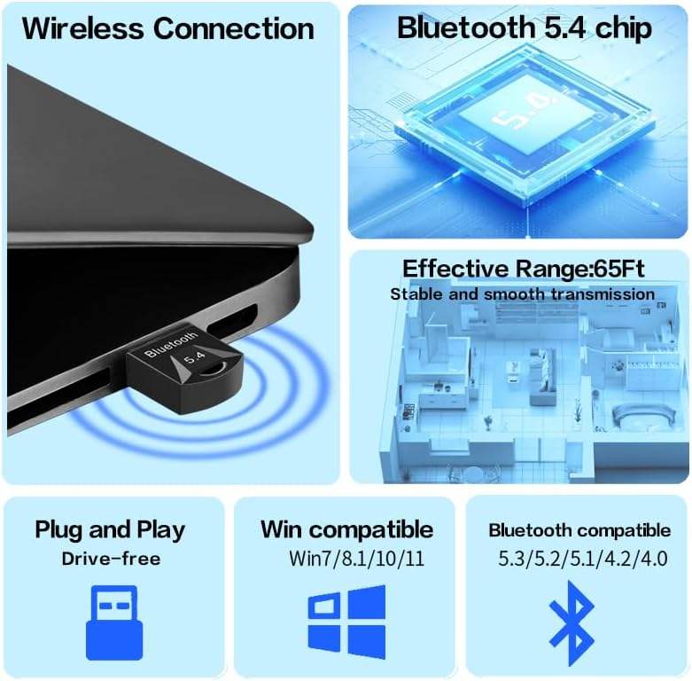 Adaptador USB 5,4 Dongle para PC Altavoz Ratón inalámbrico Teclado Música Audio Receptor Transmisor Plug and Play