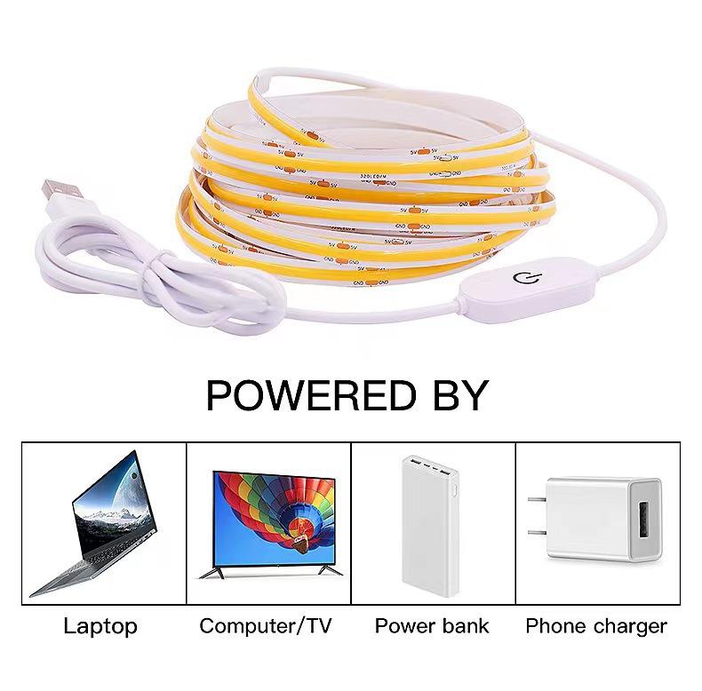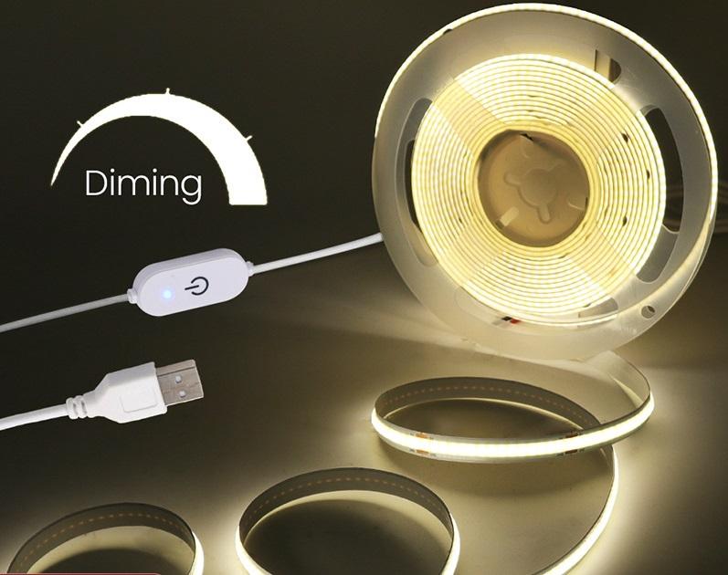 USB 5V Dimmer COB Tira de luces LED 1M 2M 3M Juego Escritorio PC Decoración Blanco cálido Blanco frío Cinta LED