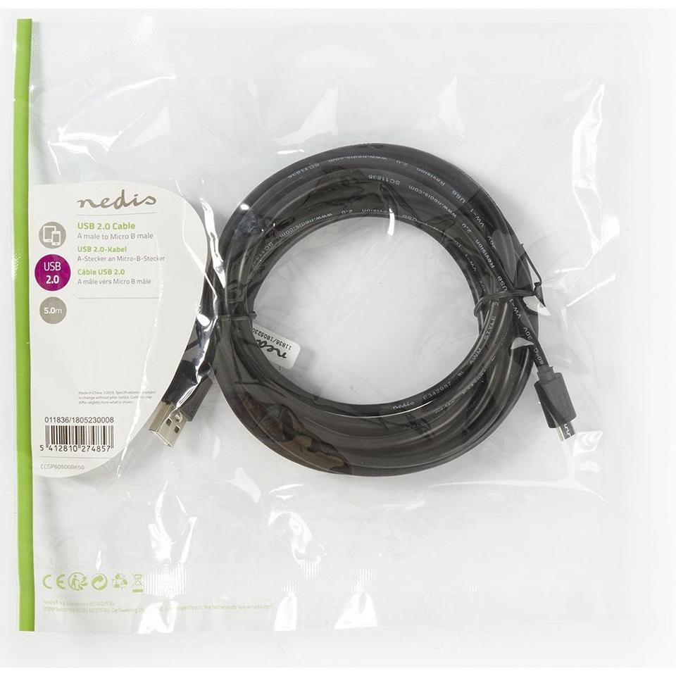 Cable USB A a Micro USB Macho-Macho de 5m, 480Mbps, para Carga y Transferencia de Datos