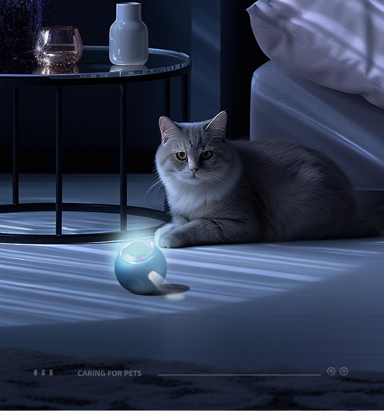 Bola automática USB para gatos, sin reglas, luz giratoria, evitación automática de obstáculos, bola para morder impermeable para perros y gatos