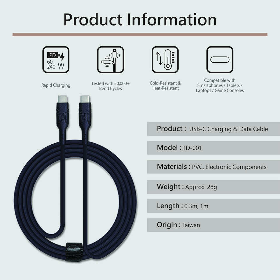 Cable de Carga Rápida USB-C de 60W, Cobre Puro Trenzado, Durable, 1M, Revestimiento de PVC, Alta Velocidad para iOS, Accesorios para Teléfonos de Coche, Carga y Sincronización