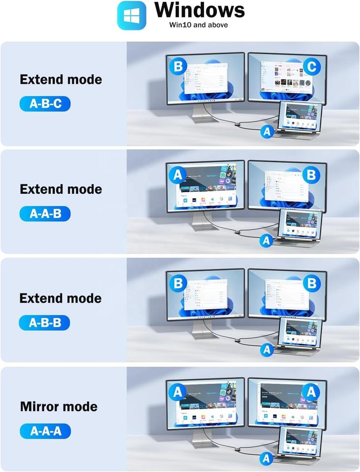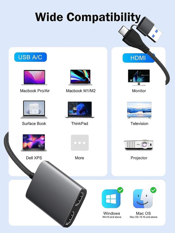 Adaptador de monitor dual USB C/A, compatible con MacOS 10,15 y superior, Windows 10, 11, adaptador HDMI dual para MacBook Pro Air M1 M2