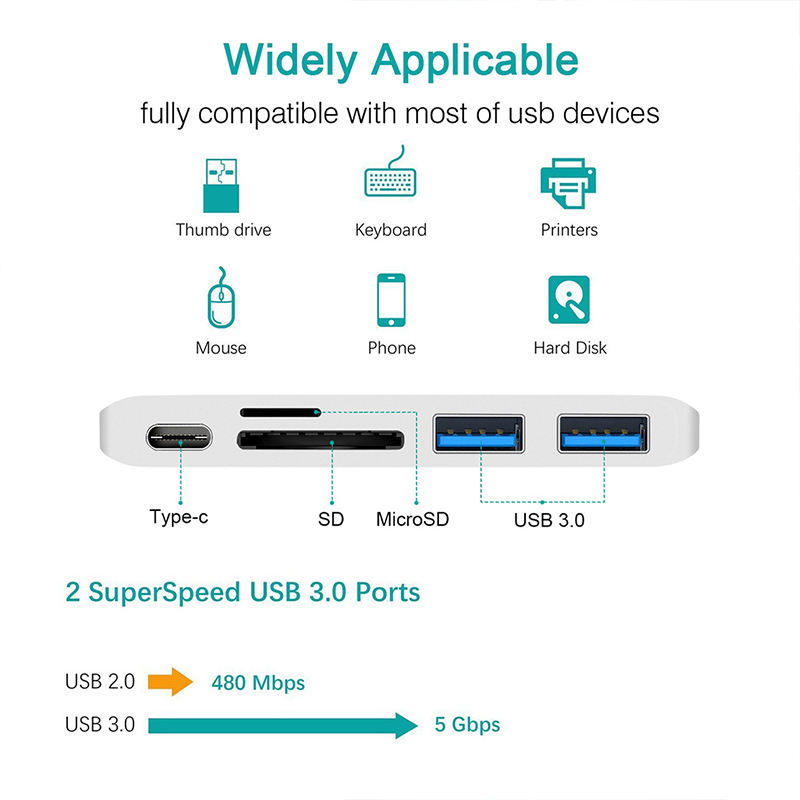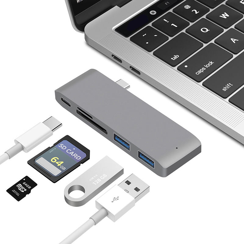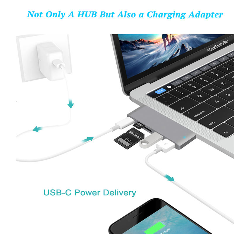 Hub USB C, Adaptador Tipo C, Estación de Acoplamiento con 2 USB 3.0, Lector de Tarjetas TF y SD, PD Thunderbolt 3 para MacBook Pro Air M1 2020 2019 2018 2017