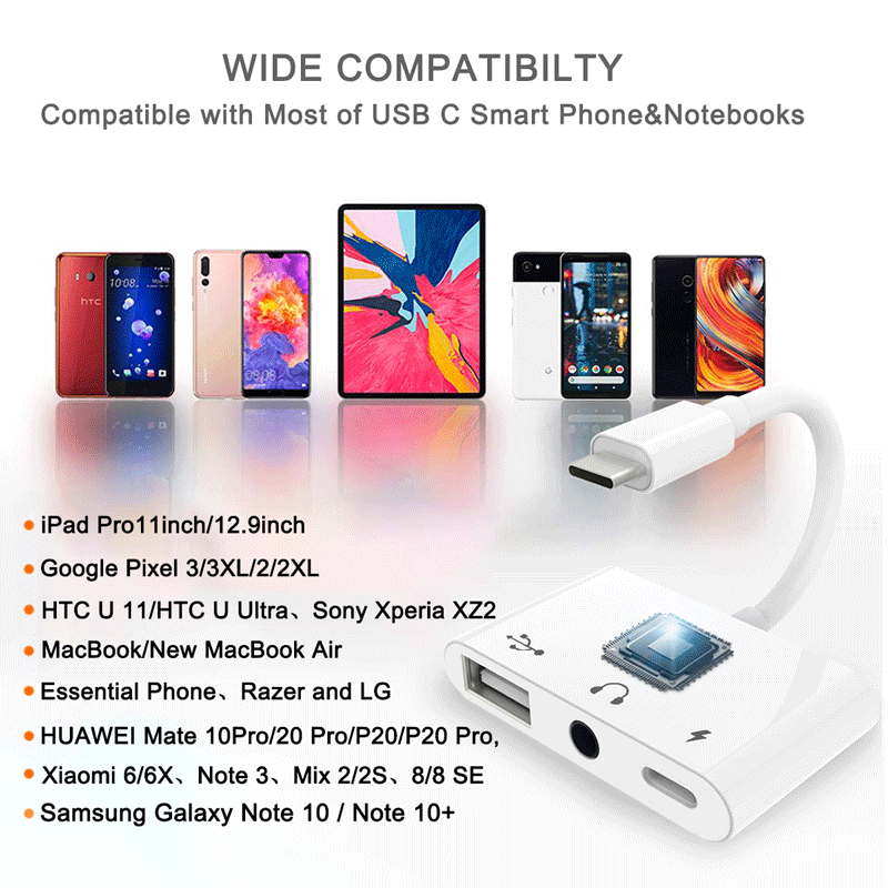 Adaptador de Audio USB-C OTG con Chip DAC, Adaptador de Tipo-C a 3.5mm OTG para Cargar Auriculares, Conector Adaptador para iPhone