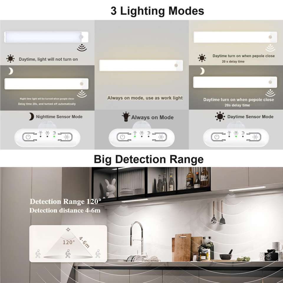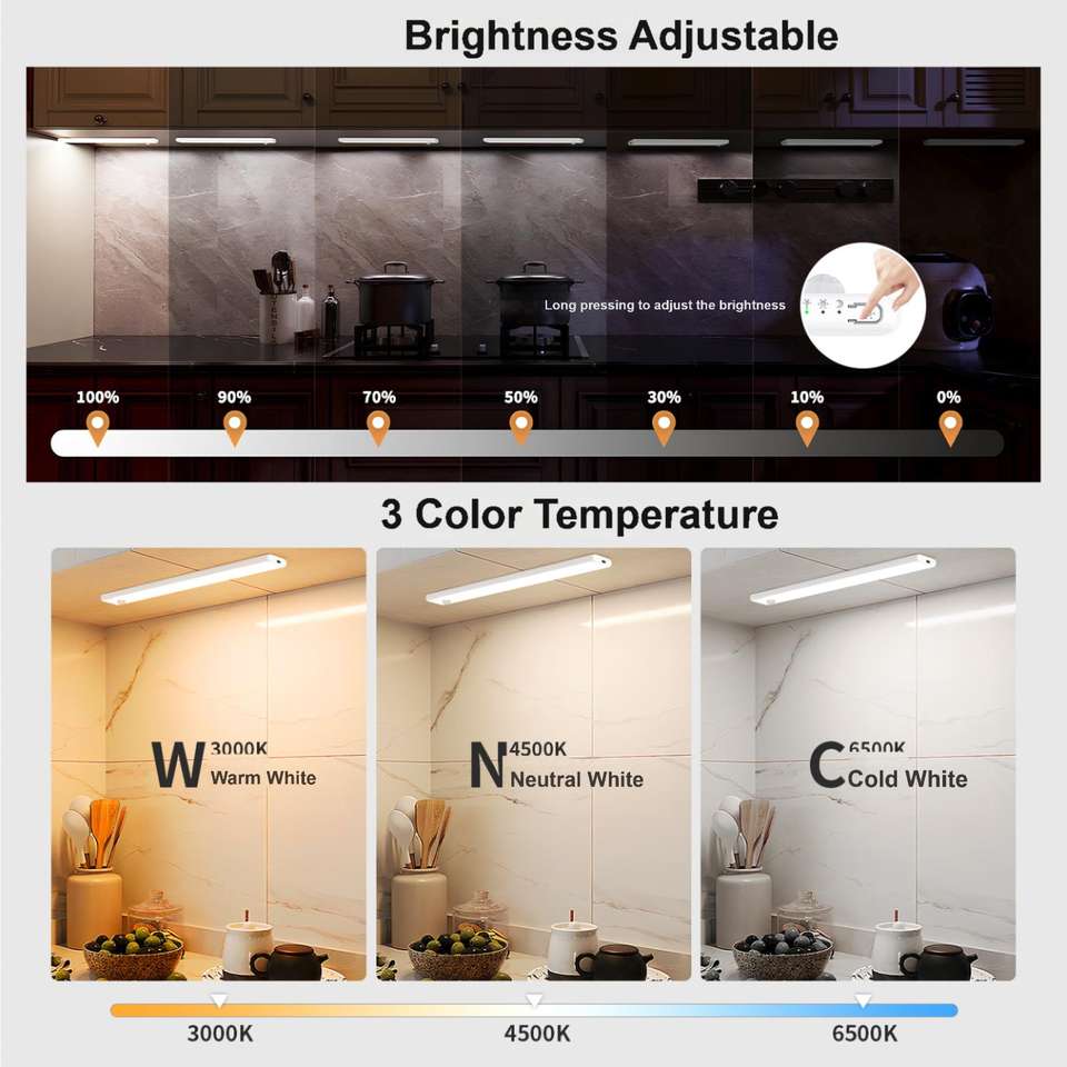 Luz LED Recargable USB C para Gabinete de Cocina, 3 Modos de Luz, Lámpara Inalámbrica Moderna con Sensor 3CCT, Pantalla de Plástico de Montaje Superficial