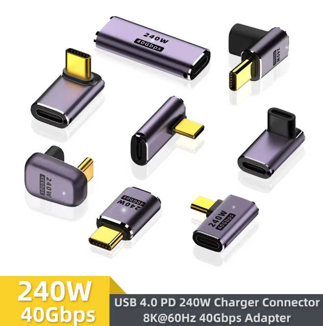Adaptador de ángulo recto USB C PD 240W 40Gbps Adaptador USB C de 90 grados Adaptador macho a hembra USB C en forma de L con video de 8K 60Hz