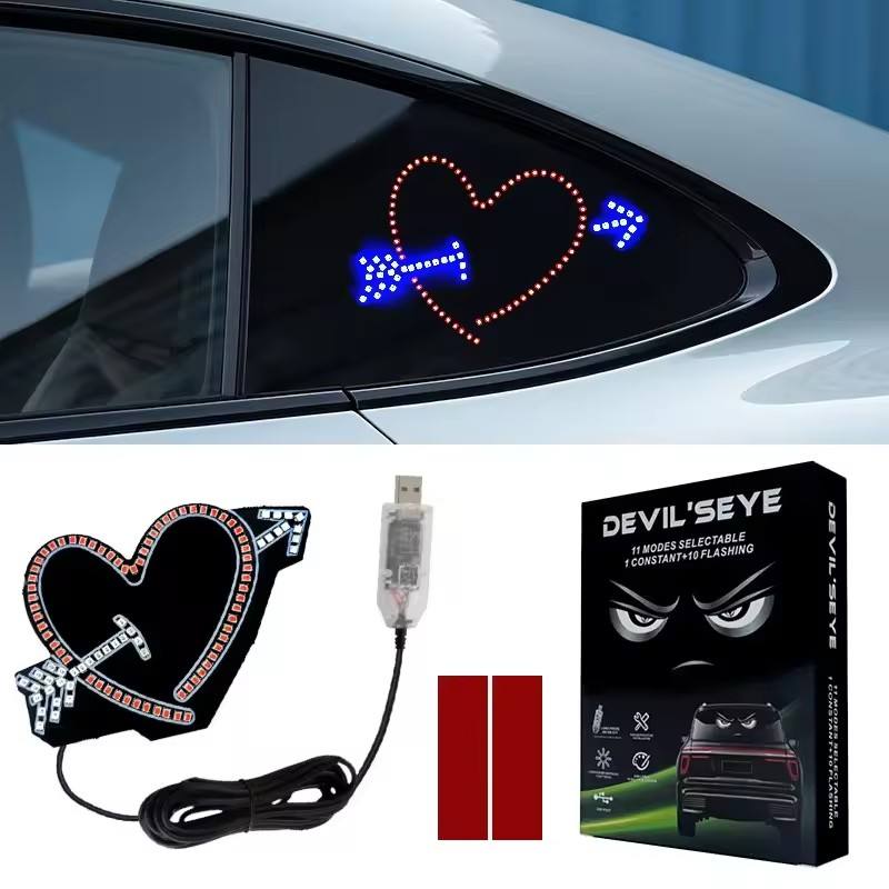 Luz LED decorativa para ventana de coche con USB, diseño inalámbrico en forma de corazón, luz de humor para ventana trasera de tendencia con brillo rojizo para ambiente romántico