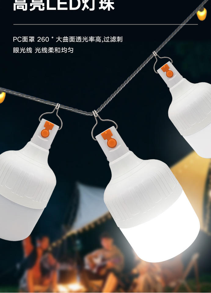 Bombilla LED operada por recarga USB de larga duración con carga USB 20 40 80 100 150 200W Intermitente en el techo Emergencias al por mayor