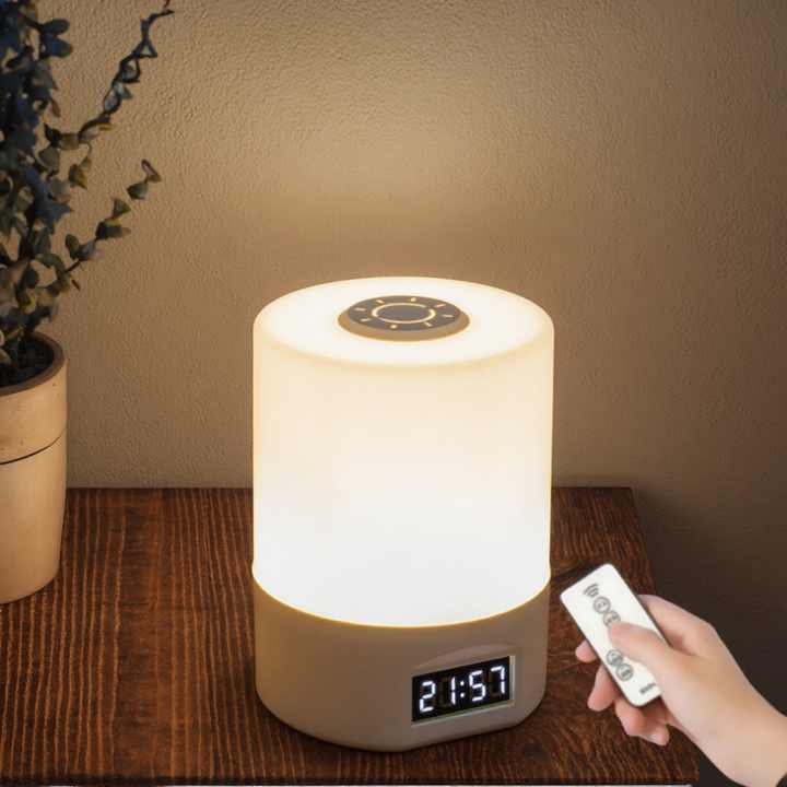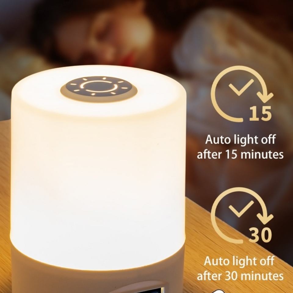 Lámpara LED Nocturna con Control Remoto y Carga USB, con Reloj, 3 Temperaturas de Color, Brillo Ajustable, Lámpara de Mesa para Mesita de Noche