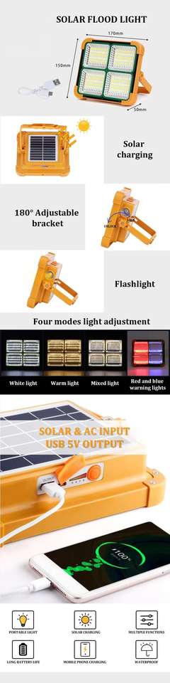 Linterna de Emergencia USB, Lámpara Solar Móvil, Portátil para Exteriores, Multifuncional, IP66 IP67, Recargable, Luz LED Solar