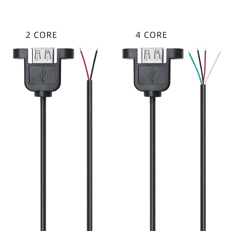 Cable de datos de 4 núcleos a XH 2,54, conector USB hembra de un solo cabezal con agujeros de tornillo para fijar el cable de alimentación de 2 núcleos