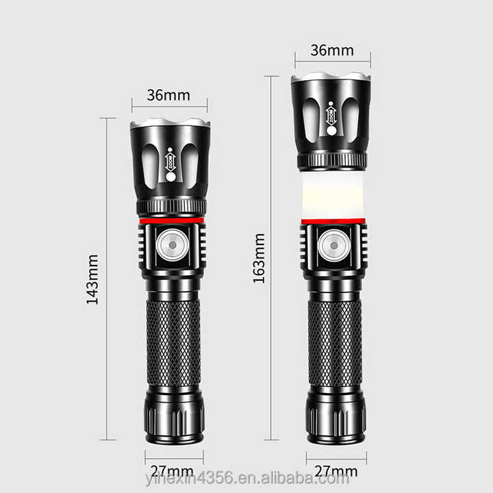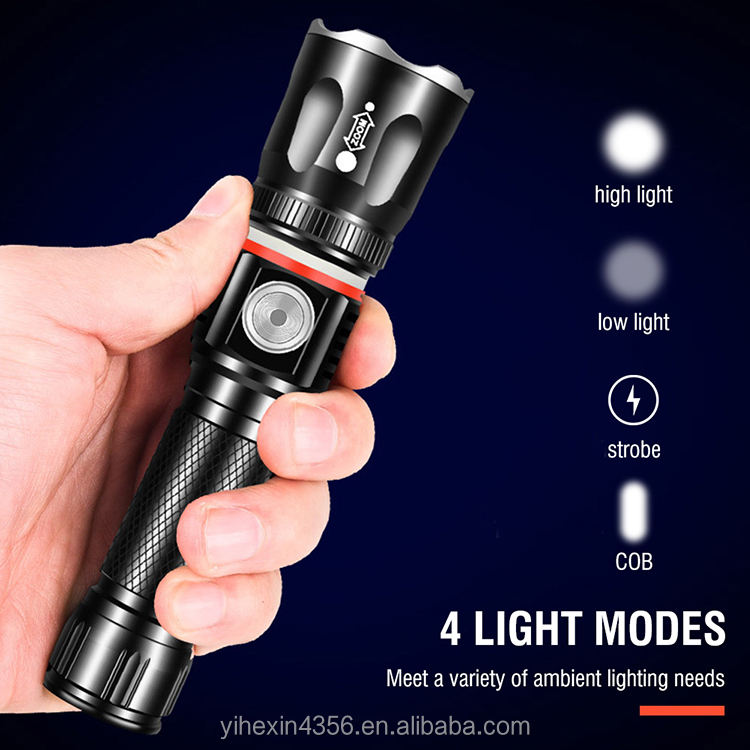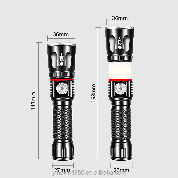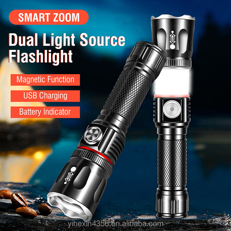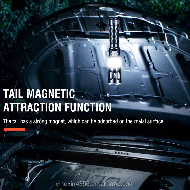 Linterna USB Táctica de Aluminio con Zoom y Base Magnética, Linterna de Camping COB, Lámpara de Trabajo