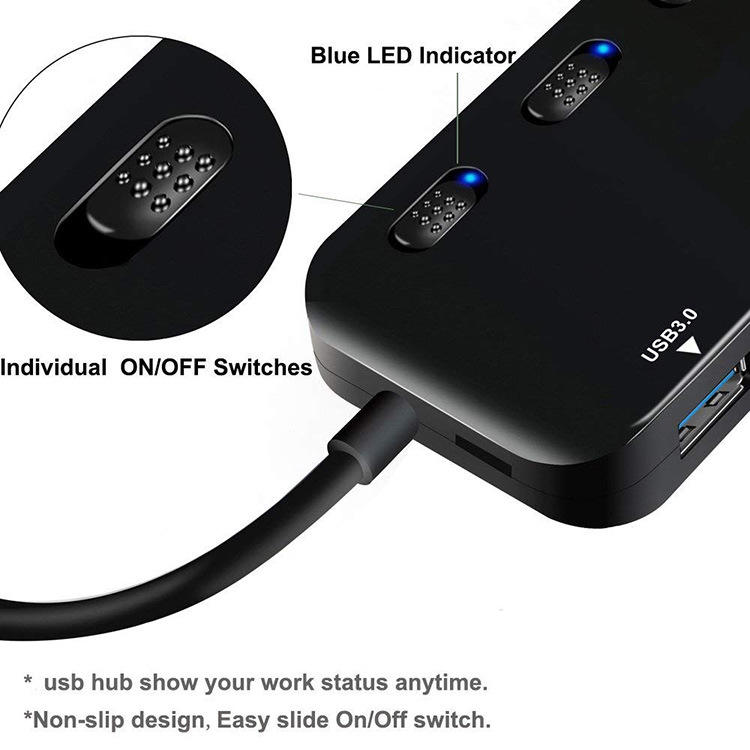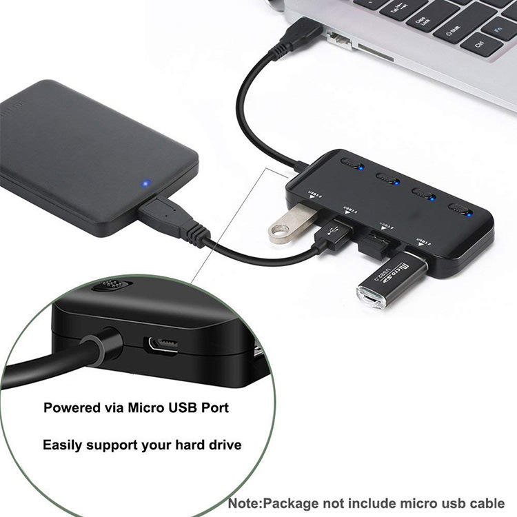 Hub USB 3.0 Ultra Delgado con Alimentación, Divisor de 4 Puertos con Fuente de Alimentación