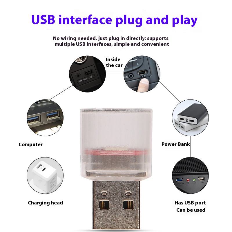 USB LED coche Interior noche luz inalámbrica ambiente colorido respiración Luz Decoración